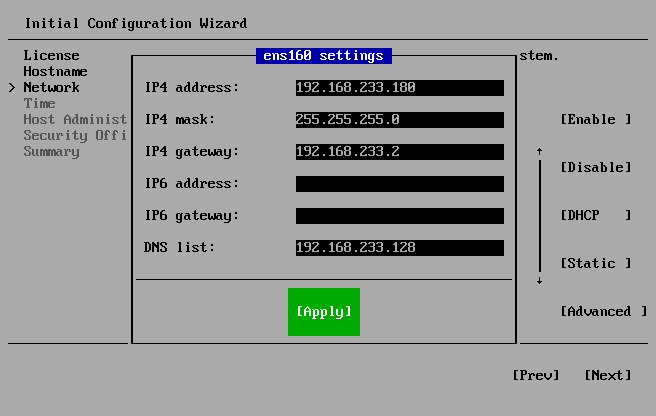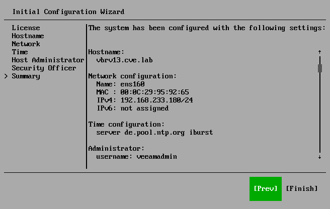 At the end of the wizard I got a summary of the configured settings and after that I was finished with initial configuration wizard.